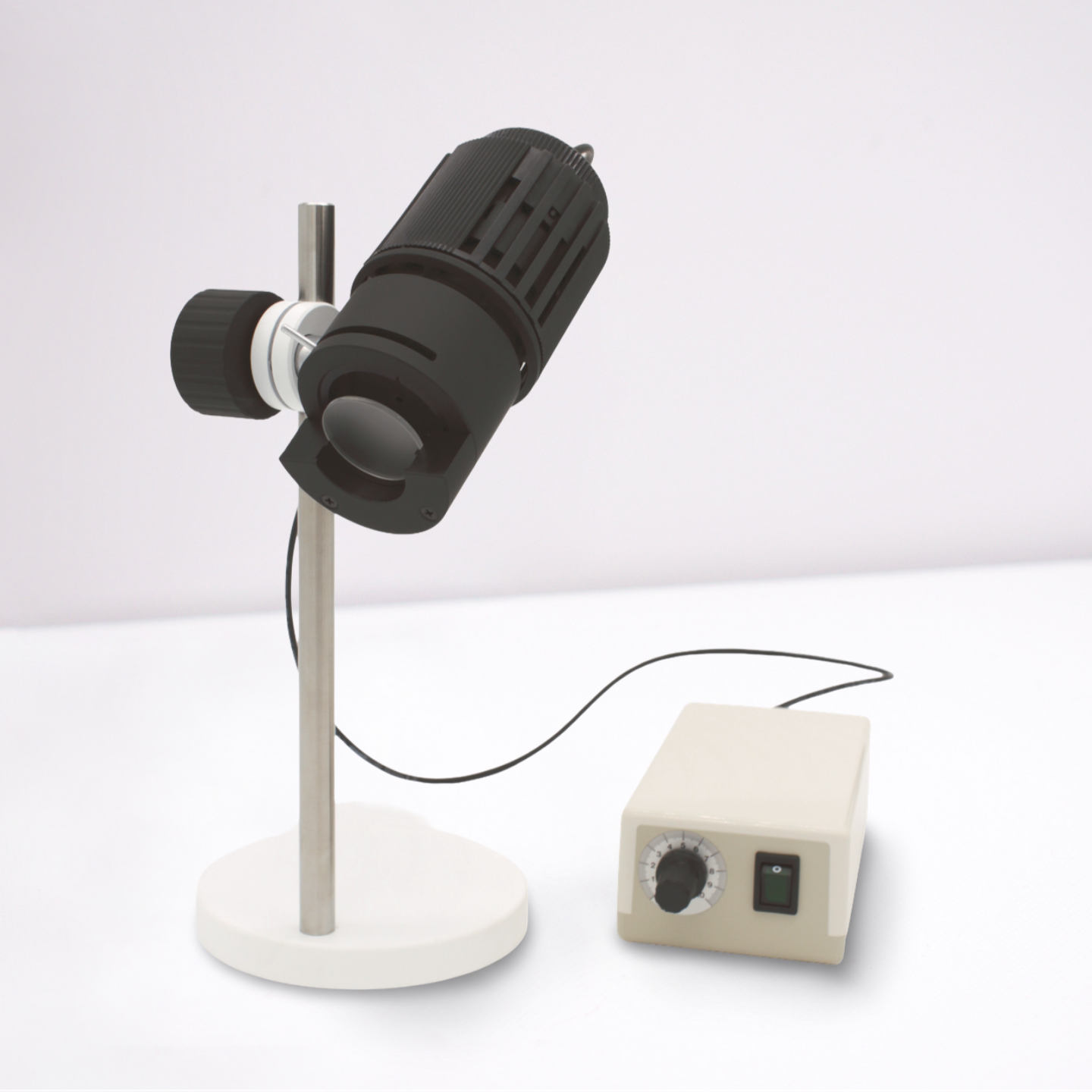 Das robuste Vorschaltgerät (Halogen oder LED-Version) sorgt für eine zuverlässige, stufenlos regelbare Stromversorgung und ist für den Einsatz in trockenen Umgebungen ausgelegt.