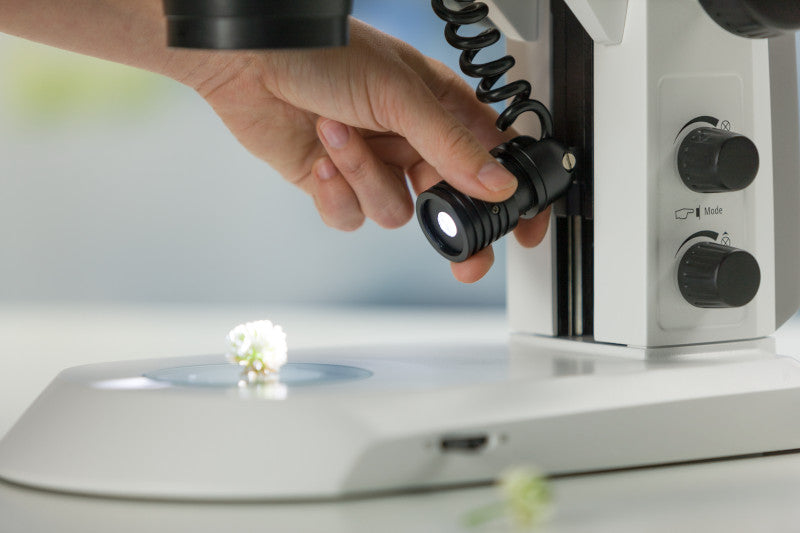 Das kompakte Stativ C Edu bietet integrierte LED-Beleuchtung für Auf- und Durchlicht sowie komfortable Bedienung mit ECO-Modus.